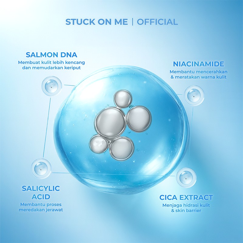 Memperbaiki & Memperkuat Skin Barrier yang Berfungsi Sebagai Anti Aging, Brightening, & Acne Treatment dengan Kandungan Bahan Aktif Salmon DNA, Niacinamide, Mandelic Acid, dan Salicylic Acid.