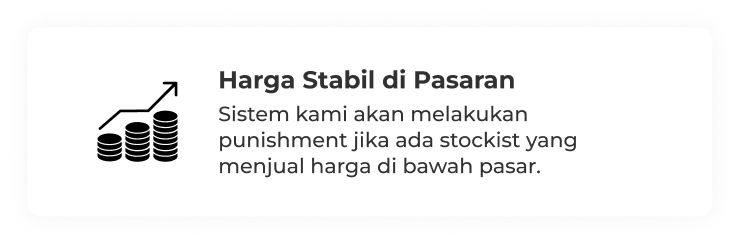 Sistem kami akan melakukan punishment jika ada stockist yang menjual harga di bawah pasar.