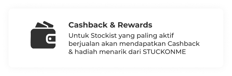 Untuk Stockist yang paling aktif berjualan akan mendapatkan Cashback & hadiah menarik dari STUCKONME