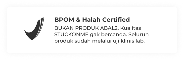 BUKAN PRODUK ABAL2. Kualitas STUCKONME gak bercanda. Seluruh produk sudah melalui uji klinis lab.